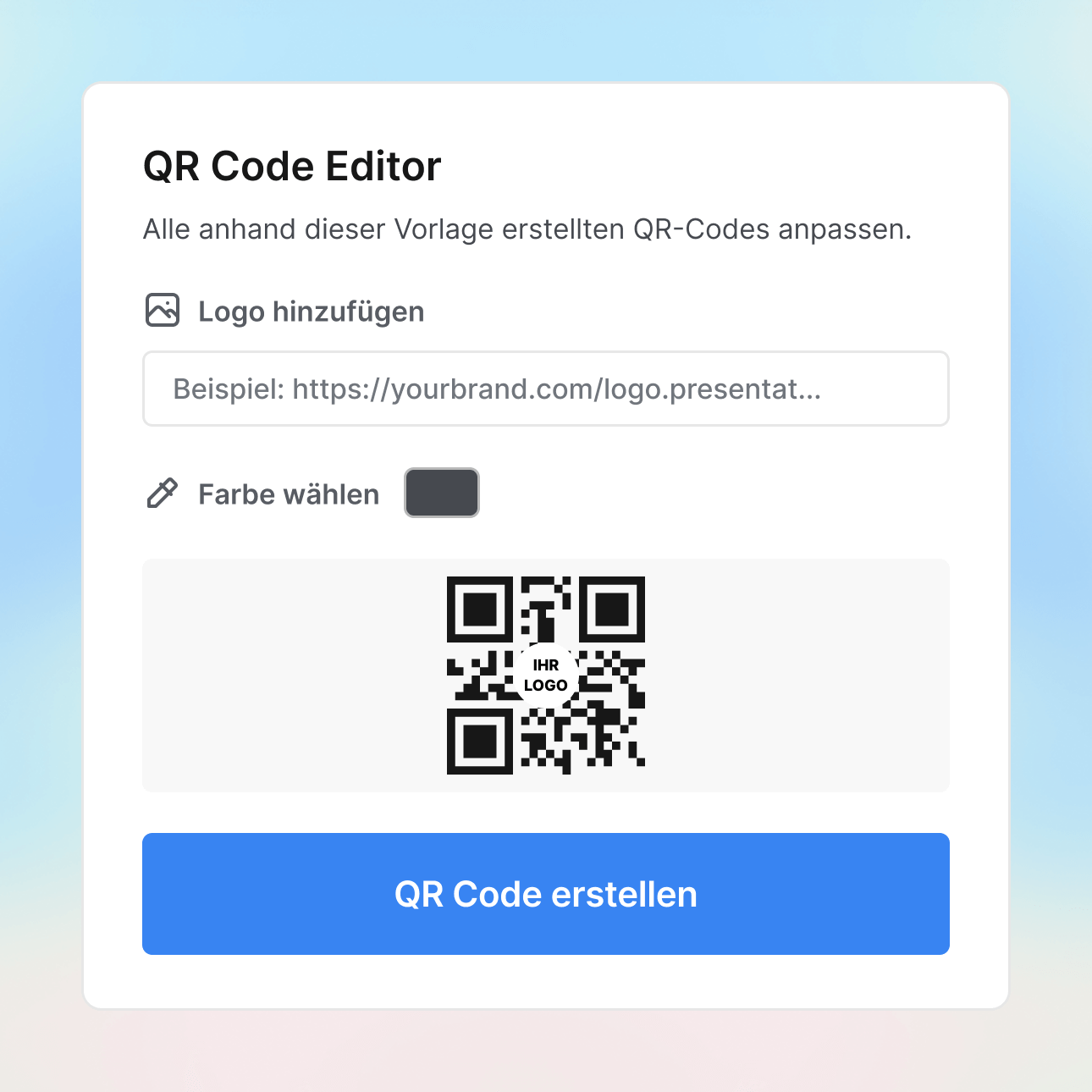 Erschaffen Sie Markenerlebnisse, die im Gedächtnis bleiben. Gestalten Sie visuell fesselnde QR-Codes mit Ihren Farben und Ihrem Logo – für einen glänzenden Auftritt und maximale Scan-Raten auf jedem Gerät.