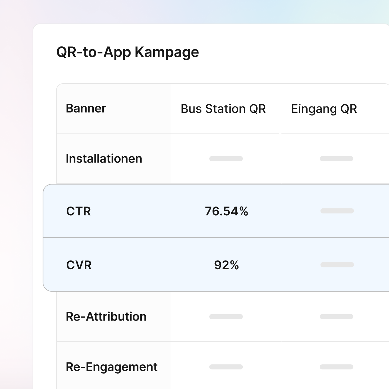 Erstellen Sie direkte Wege von physischen Touchpoints zu wertvollen In-App-Erlebnissen. Verwandeln Sie QR-Scanner in engagierte User mit reibungslosen Journeys, die messbare Ergebnisse über jeden Offline-Kanal liefern.
