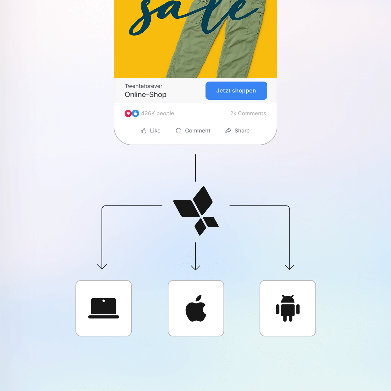 Erfassen Sie user unabhängig vom Gerät. Erkennen und leiten Sie iOS-, Android- und Desktop-user automatisch passend weiter, um die Conversion-Chancen bei jeder sozialen Interaktion zu maximieren.
