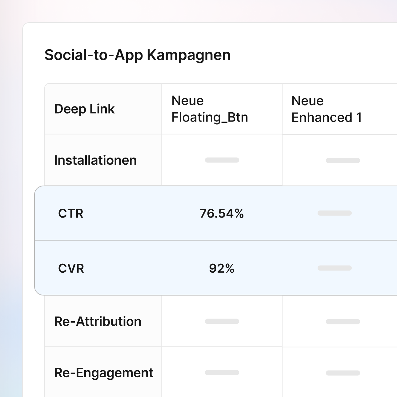 Überwachen Sie die Performance Ihrer Social-Kampagnen in Echtzeit. Sehen Sie Click-Through-Rates, App-Öffnungen und Conversion-Metriken in Dashboards, die genau zeigen, welche Social-Kanäle und Influencer-Kampagnen die wertvollsten user liefern.