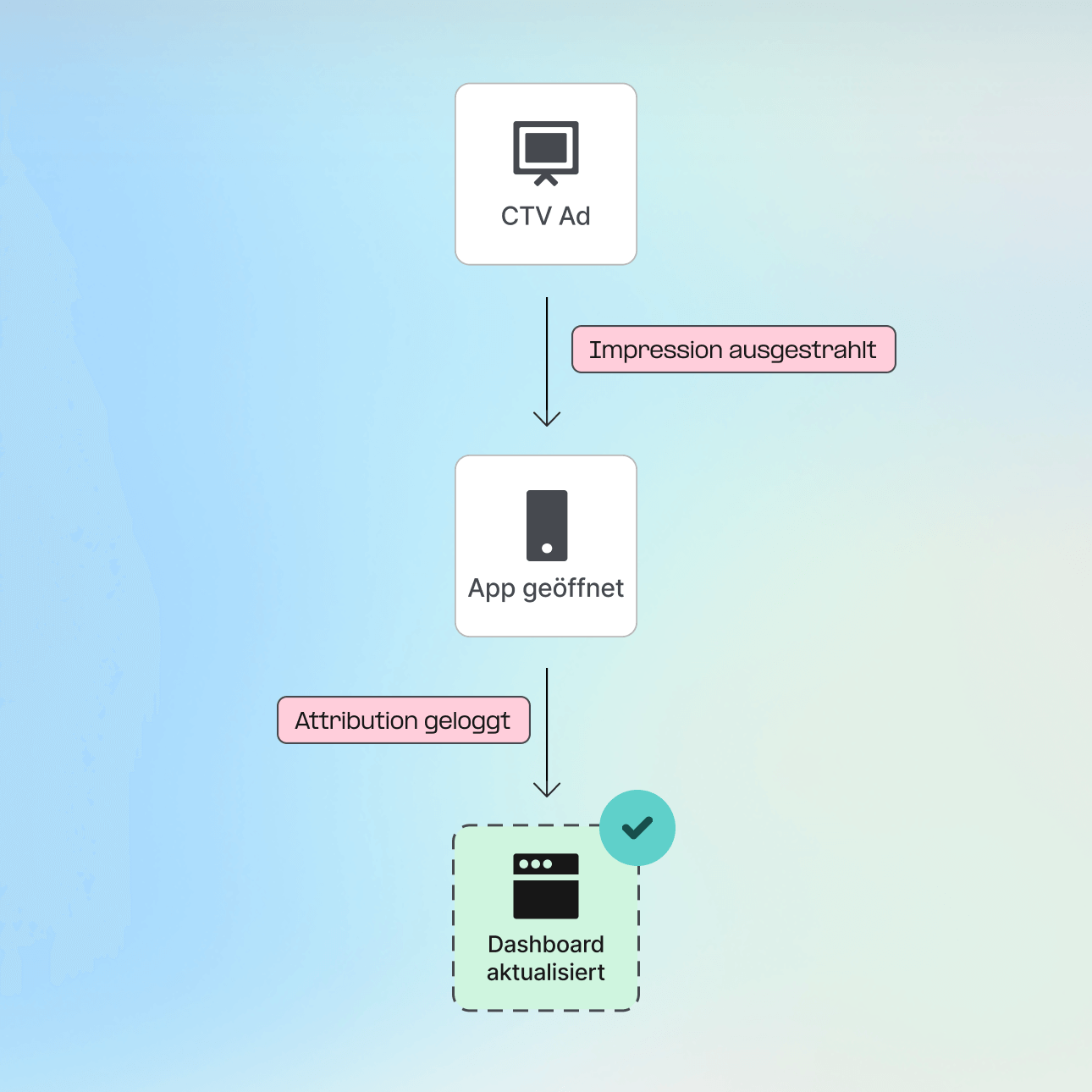 Messen Sie den Einfluss von CTV über Mobile hinaus. Verknüpfen Sie Connected-TV-Ad-Exposures mit Conversions über Apps, Websites, PC und Konsole sowie Offline-Kanäle hinweg – für vollständige Performance-Transparenz.