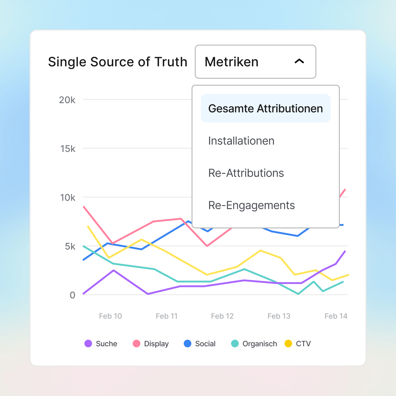 Erfassen Sie jede Conversion mit datenschutzfreundlichen Modellen, die Signalverluste ausgleichen. Erhalten Sie verlässliche, objektive Daten, um Ihre Kampagnen auf iOS und Android effektiv zu optimieren.