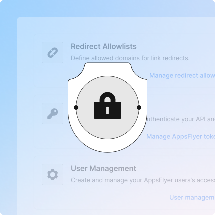 Protect your data, meet compliance standards, and reduce risk with AppsFlyer’s Enterprise-Grade Security package. Automate access with SSO and SCIM provisioning, enforce Zero Trust policies, and stay audit-ready with advanced controls.