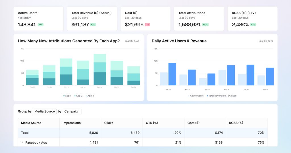 1) Sistemas unificados de atribuição que conectam as origens das campanhas ao comportamento in-app e resultados de negócios. Assim, é possível visualizar a jornada completa dos clientes, incluindo transições de web-to-app e interações com QR codes, eliminando a falta de conexão entre o investimento de marketing e a geração de receita.