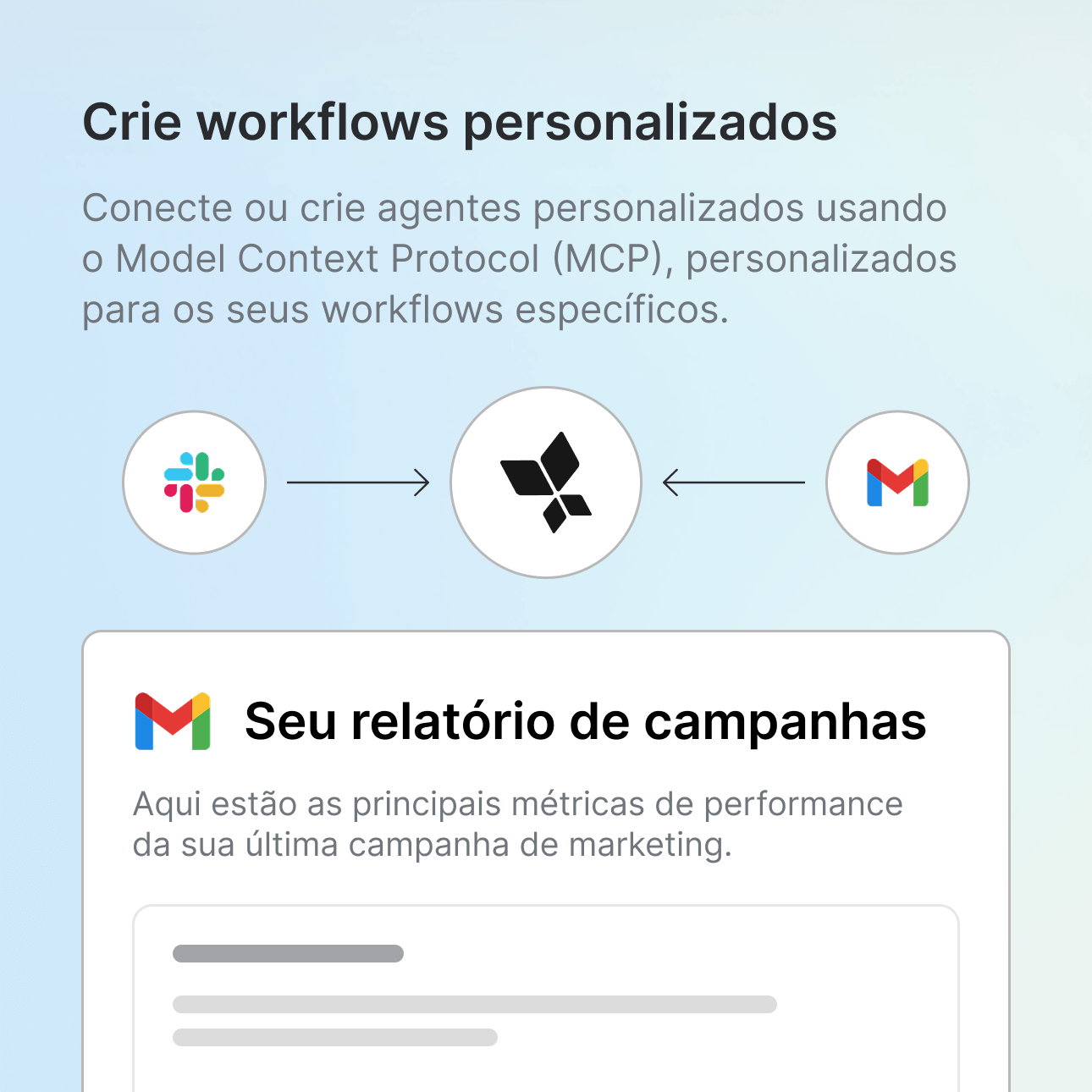 Com o MCP da AppsFlyer, você pode conectar seus dados para criar agentes ou automações completamente personalizados em ferramentas externas.