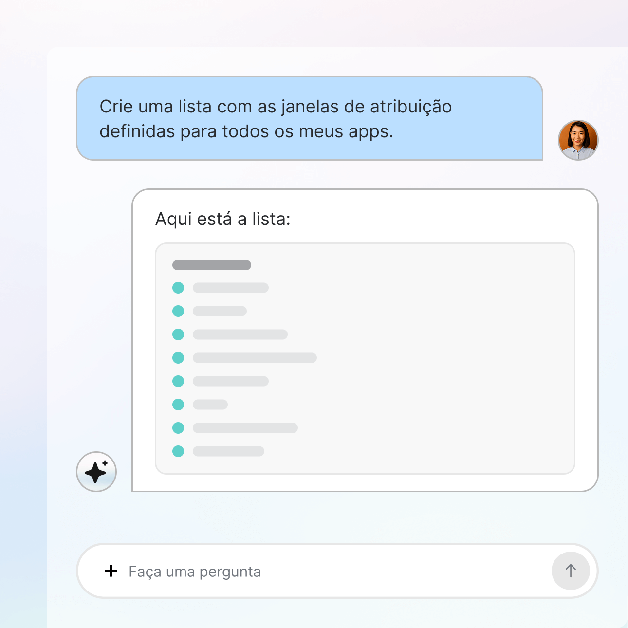 Consulte exatamente as métricas que você precisa – ROAS, retenção, LTV – segundo as suas metas específicas. O MCP da AppsFlyer conecta seus dados de marketing diretamente à sua LLM preferida. Sem engenharia, sem configuração de API, sem esperar analistas. Conecte seus agentes de IA ou apenas pergunte “o que impulsiona meu CAC?” e receba respostas em poucos segundos.