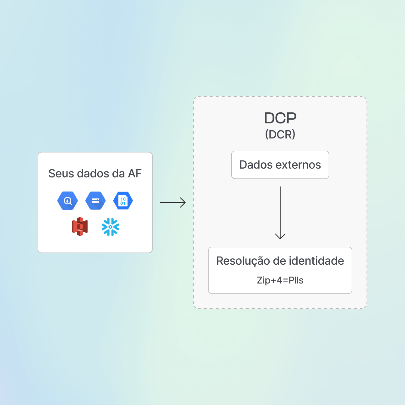 Ative audiências rapidamente com o mapeamento automático de identidades. A AppsFlyer faz o mapeamento de forma segura em um clean room, seguindo processos seguros e protegidos.