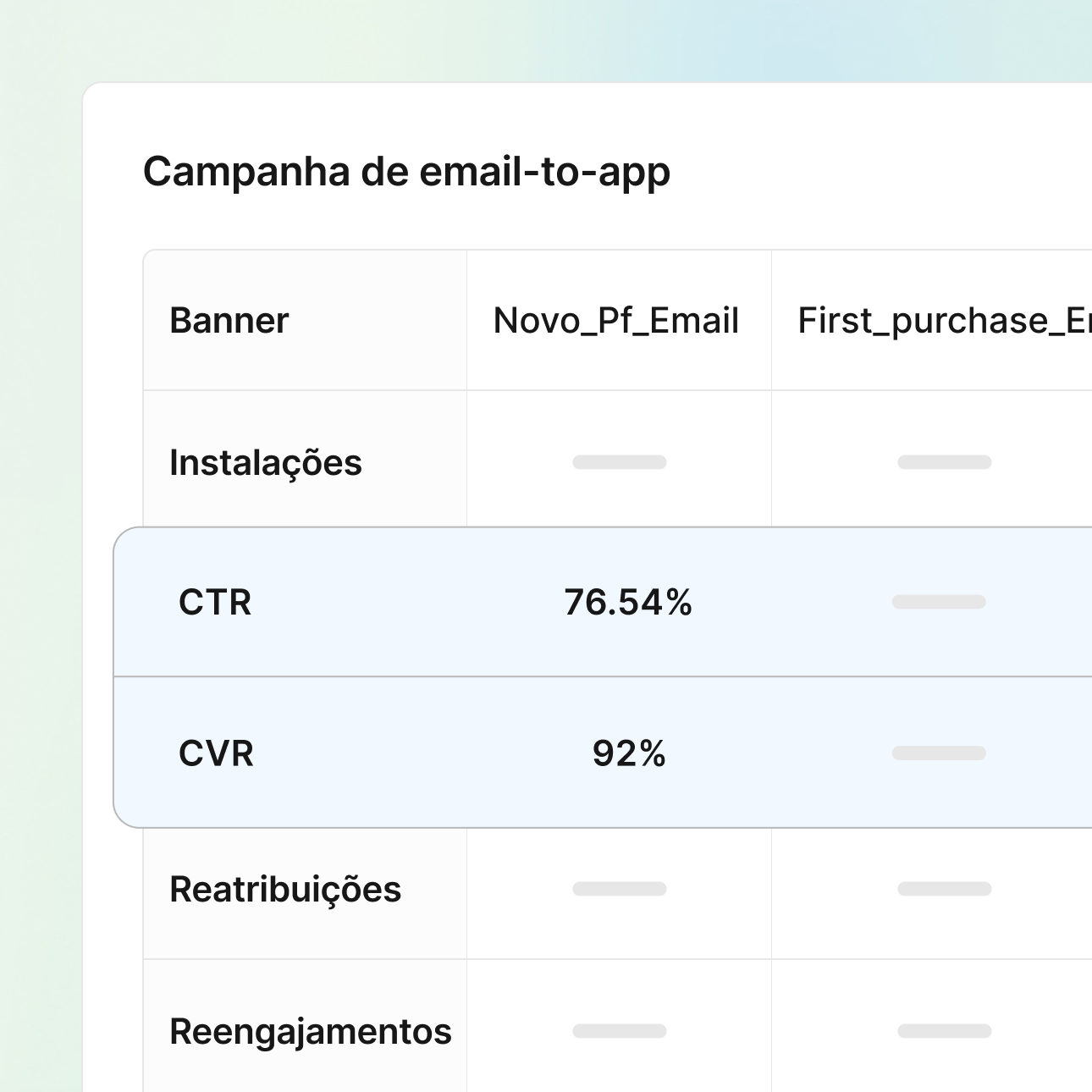 Veja a performance de email-to-app instantaneamente. Monitore taxas de cliques, aberturas de apps, conversões e atribuições de receita em dashboards que ajudam a otimizar campanhas ativas.