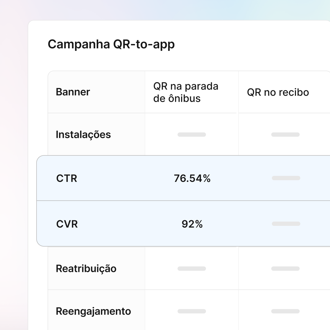 Mensure cada digitalização, desde QR codes físicos até a conversão no aplicativo. Confira a performance do seu QR code em mídias pagas (outdoors, anúncios impressos, publicidade em transportes) e canais próprios (embalagens, recibos, expositores em lojas) para saber quais investimentos impulsionam os usuários de maior valor.