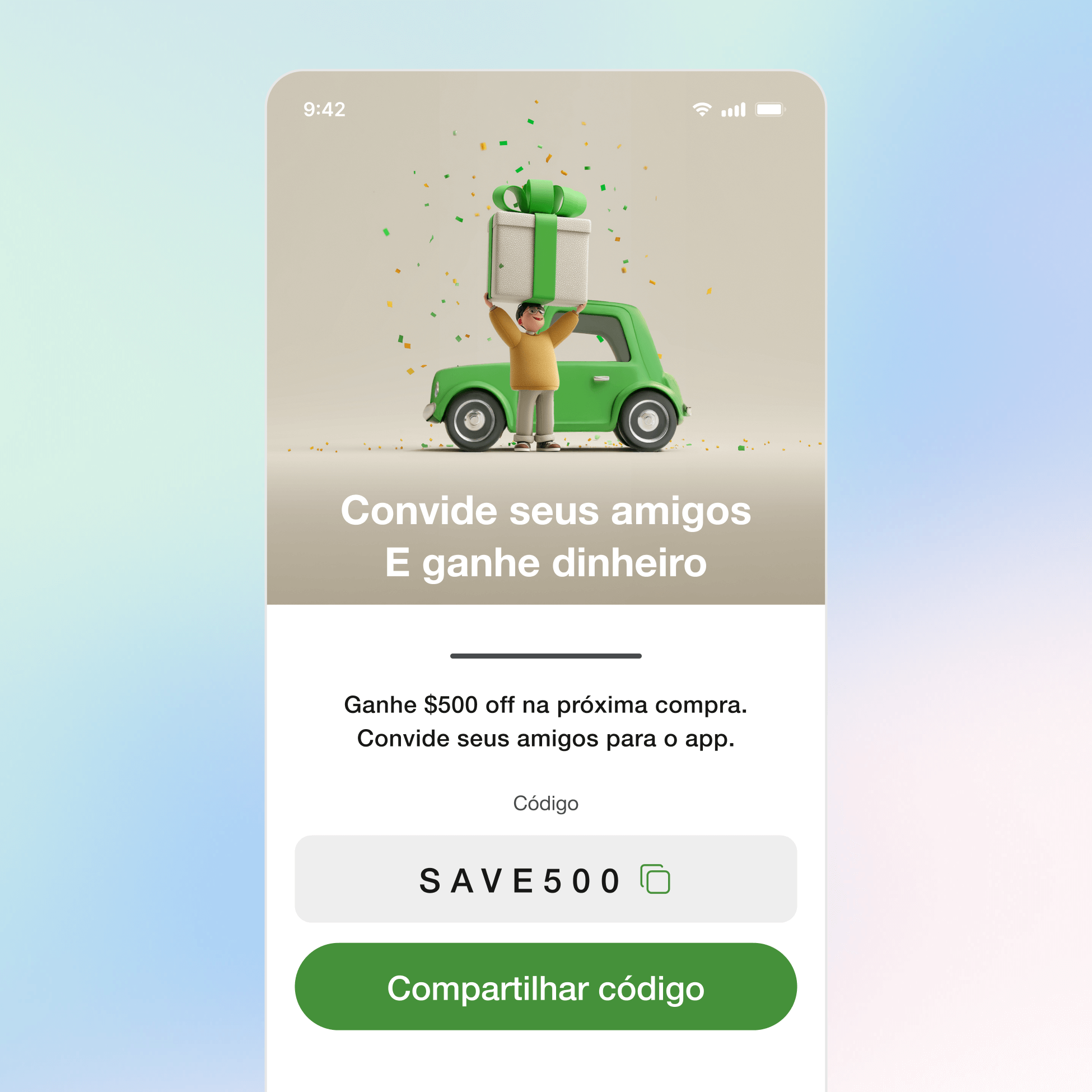 Incentive seus usuários a compartilharem seu app com seus amigos para impulsionar instalações e retenção. Crie experiências de referral fáceis de usar, com deep links personalizados que trazem resultados mensuráveis (a um custo significativamente menor em comparação a canais pagos).