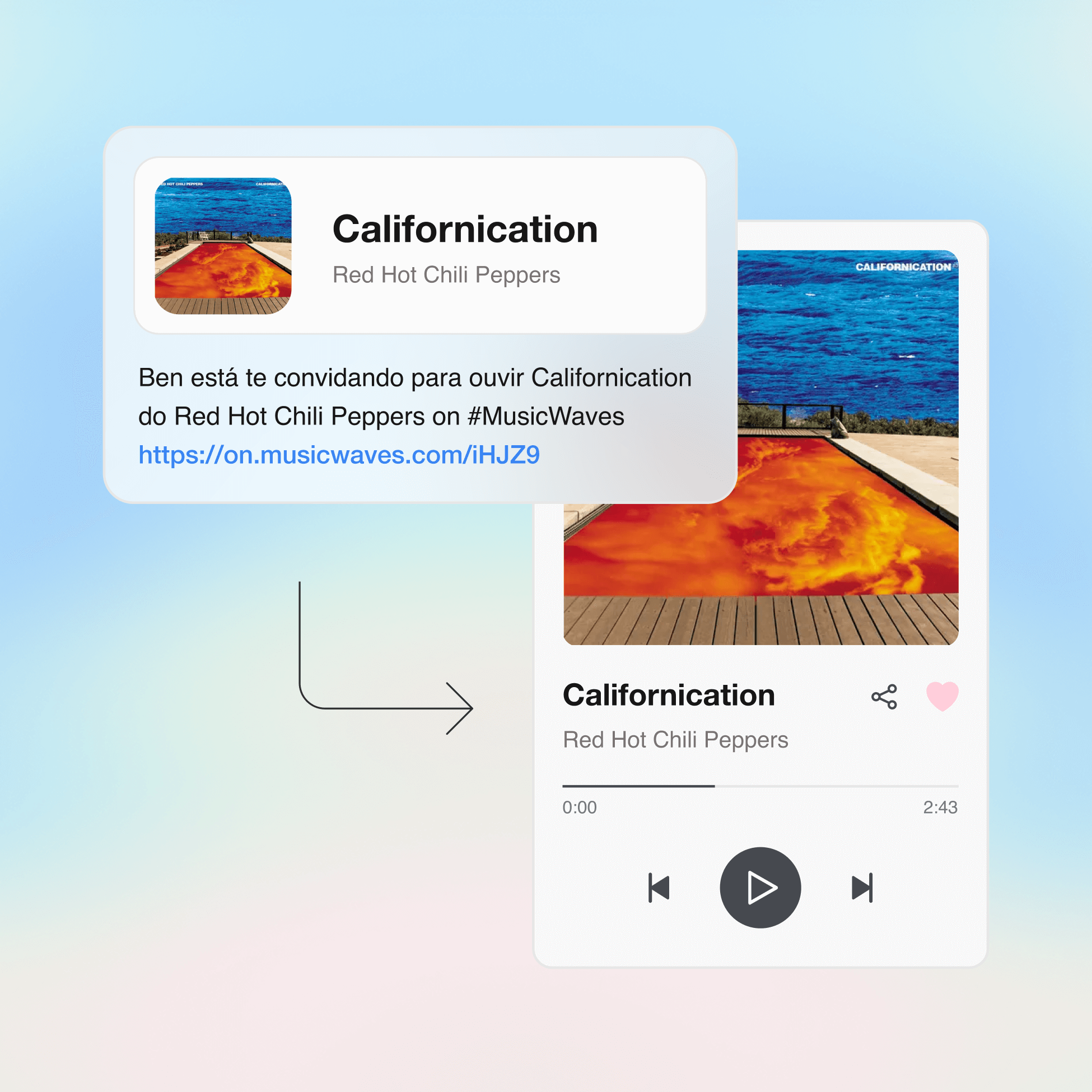 Deixe que seus usuários compartilhem conteúdos do app com seus amigos. Leve-os diretamente para as experiências relevantes dentro do app, oferecendo uma jornada rápida e fácil que gera mais engajamento e impulsiona a retenção.