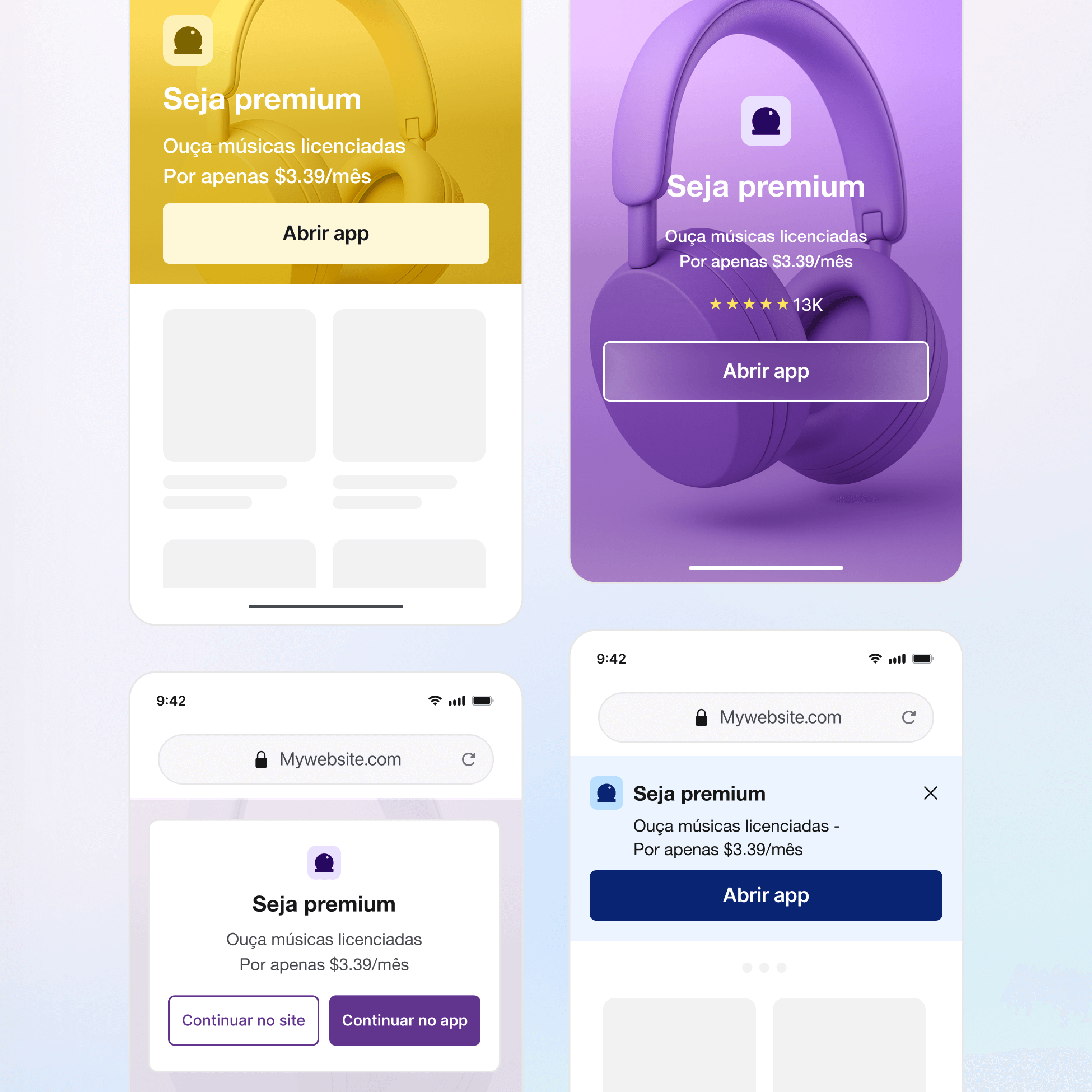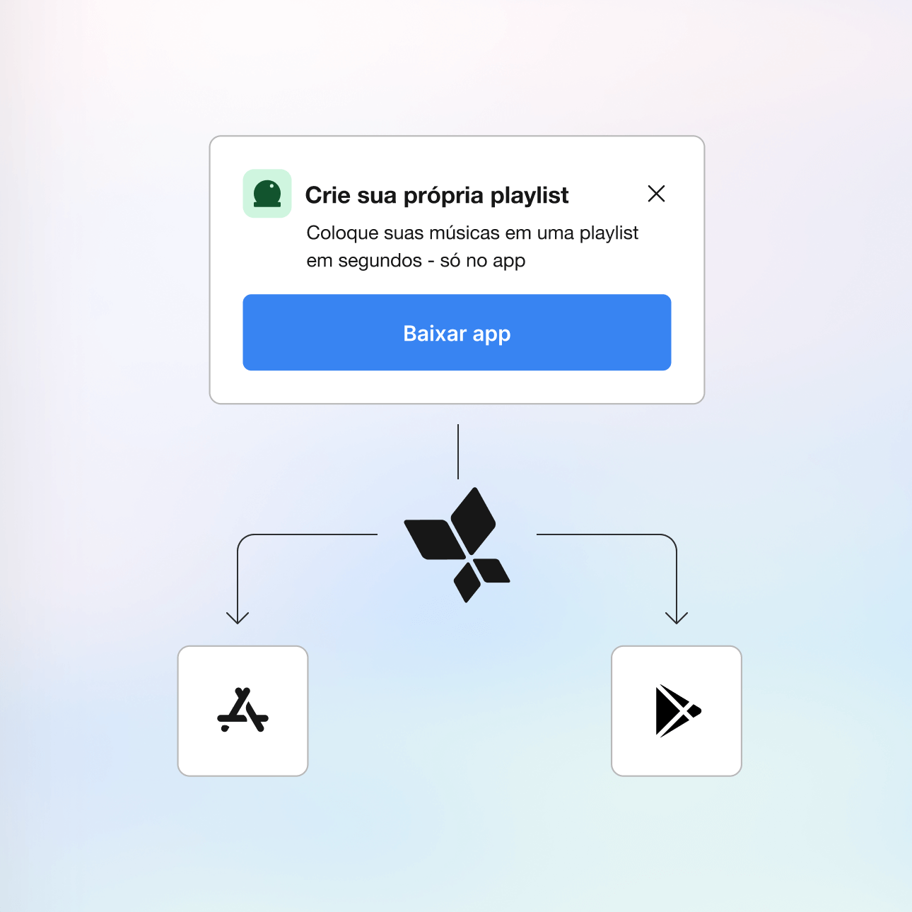 Converta visitantes da web em usuários de apps com deep linking. Implemente Smart Banners em minutos, direcione os usuários para conteúdos relevantes e alcance +30% em taxas de cliques para instalação – sem precisar de desenvolvedores.