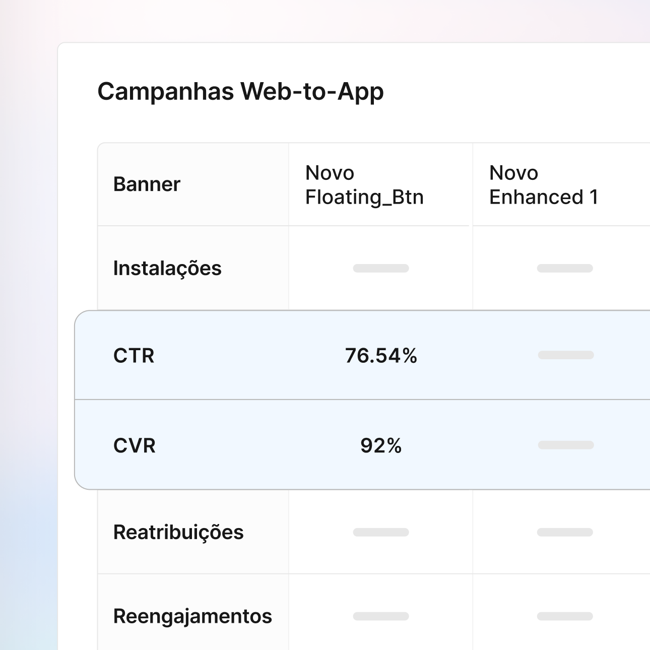 Gere uma atribuição precisa para cada conversão. Crie URLs dinâmicos que rastreiam sua performance em todas as fontes de tráfego, desde ad networks a cliques, garantindo visibilidade total do seu web-to-app.