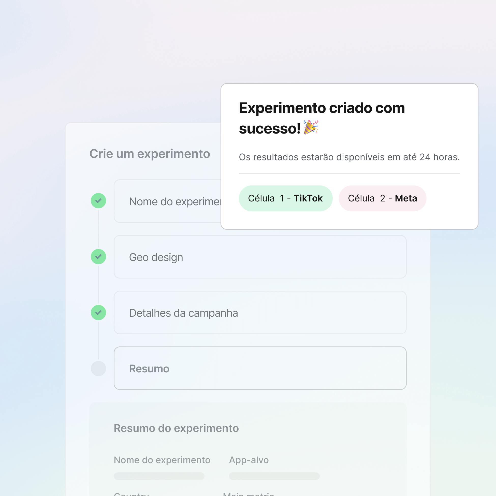 Rode experimentos em segundo plano com grupos de controle automatizados, monitoramento contínuo e análise em tempo real, sem planilhas ou dependências de BI.