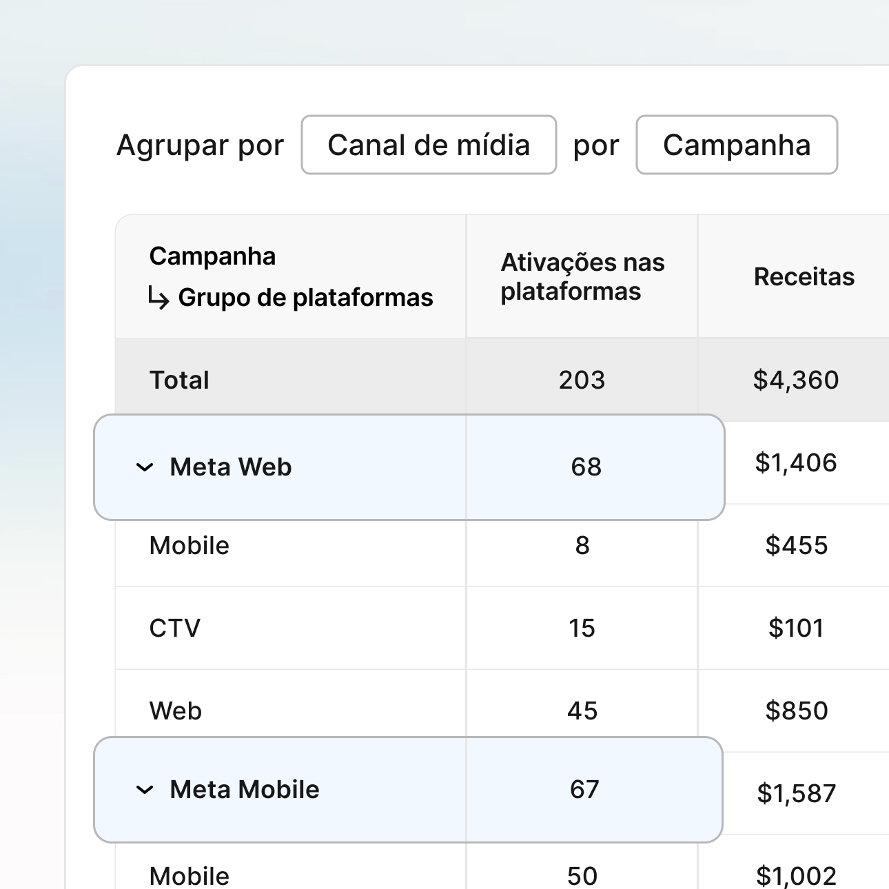 Acesse uma mensuração unificada de canais como mobile, web e offline e tenha total visibilidade das jornadas dos seus usuários, acessando uma atribuição precisa de cada touchpoint.