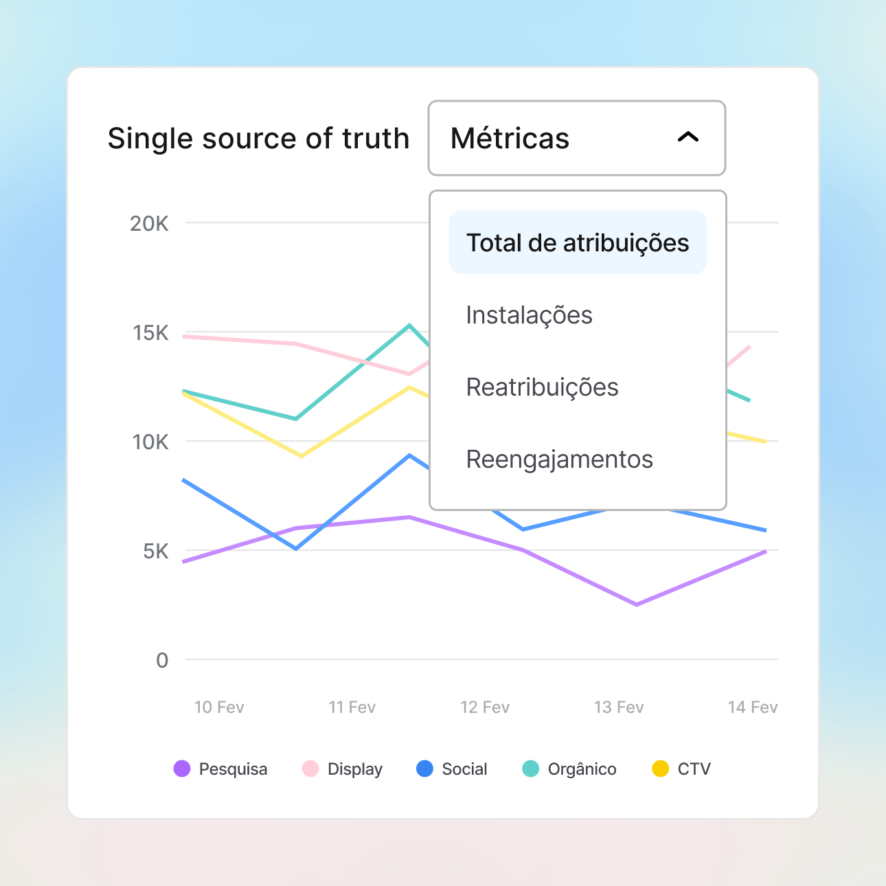 Obtenha cálculos de ROAS precisos e confiáveis. Amplie campanhas de sucesso na Meta, no Google, TikTok e centenas de canais de mídia com confiança usando nossa plataforma unificada de análise e atribuição.