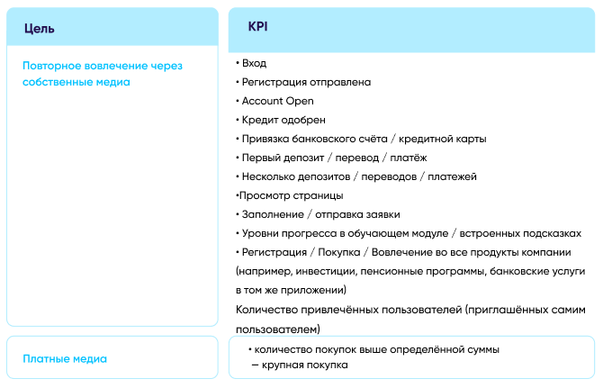 1 – Основные показатели повторного вовлечения для банковских приложений