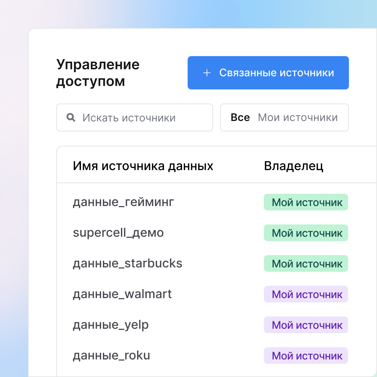 Определяйте роли, уровни доступа и права на запросы, чтобы владельцы контролировали свои данные.