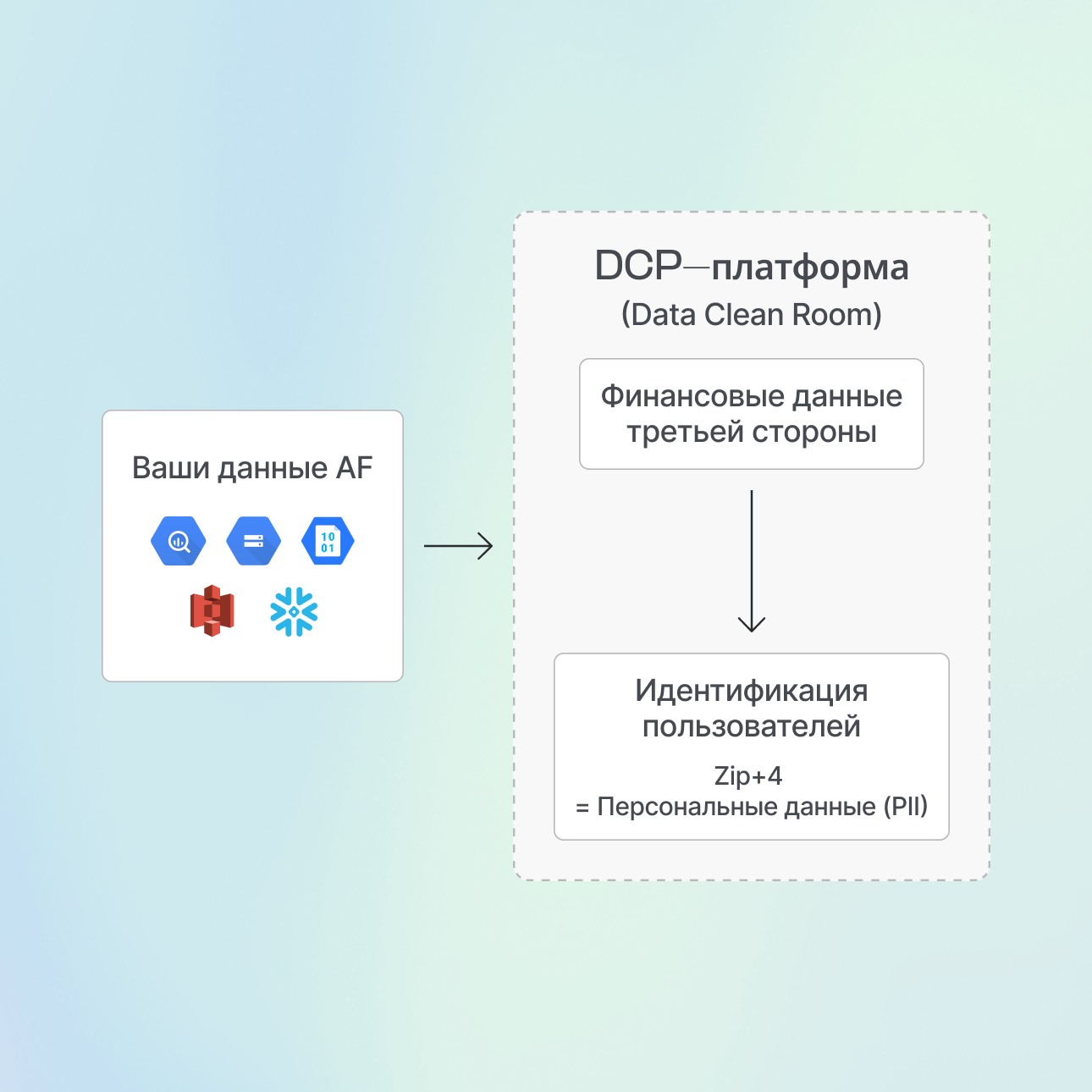 Быстрое внедрение без ручной настройки. Используйте инфраструктуру AppsFlyer для создания обогащённых аудиторий с соблюдением требований конфиденциальности на основе защищённых транзакционных сигналов.