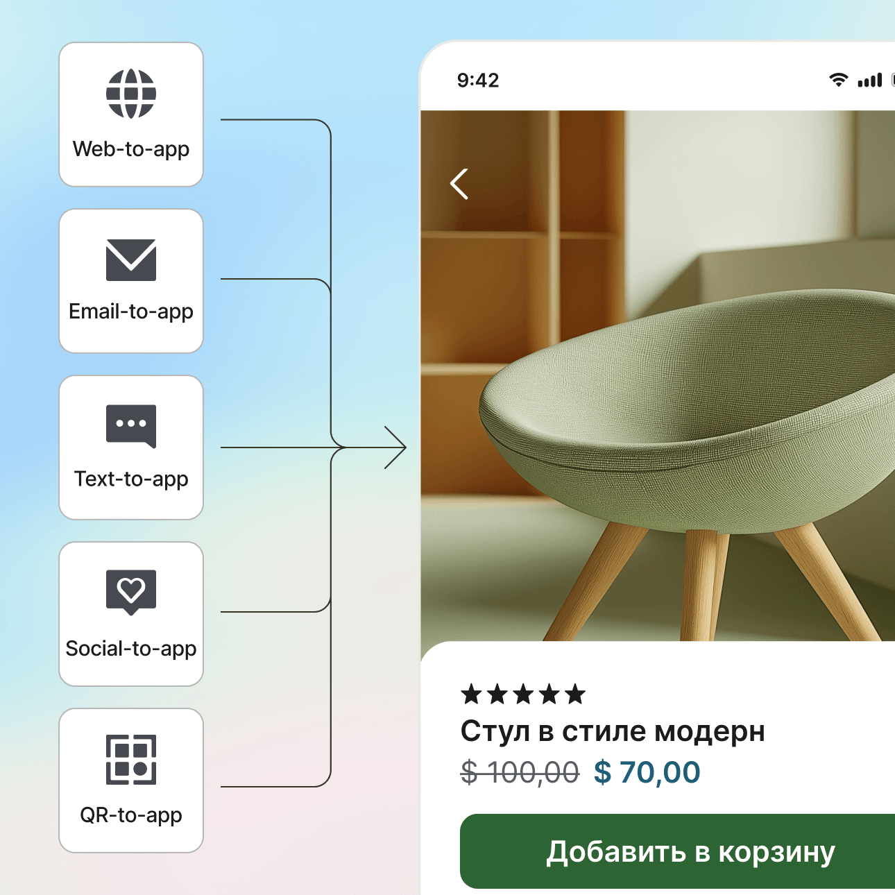 Устраняйте ошибки маршрутизации и непредсказуемое поведение благодаря предсказуемой и удобной логике диплинкинга. Сводите участие разработчиков к минимуму и при этом обеспечивайте надёжную работу маркетинговых кампаний без ущерба для производительности приложения и пользовательского опыта.