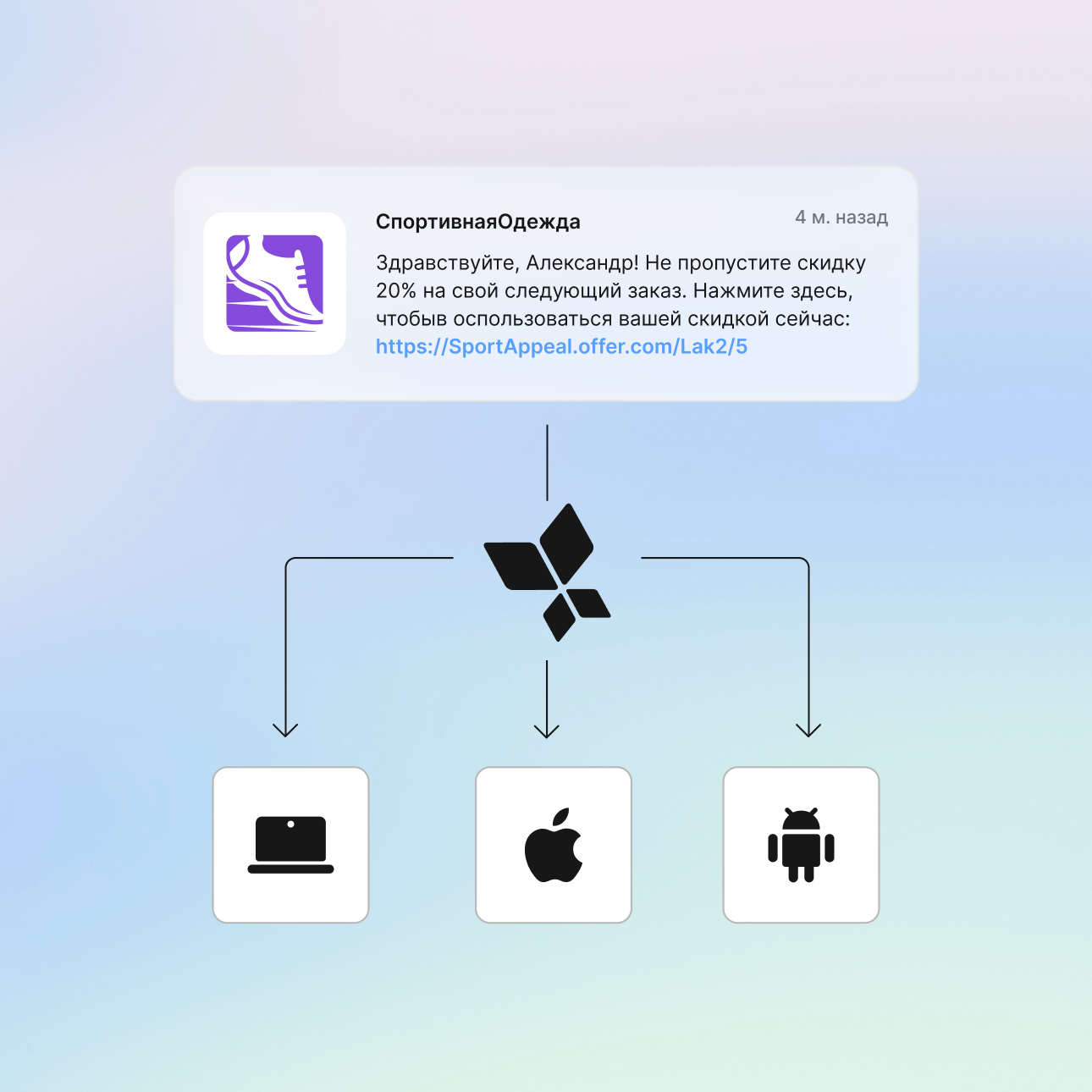 Бесшовное взаимодействие с пользователями на любом устройстве. Автоматически определяйте платформу: iOS, Android или настольный компьютер и обеспечивайте маршрутизацию соответствующим образом, обеспечивая оптимальный опыт независимо от того, как пользователи получают сообщения.
