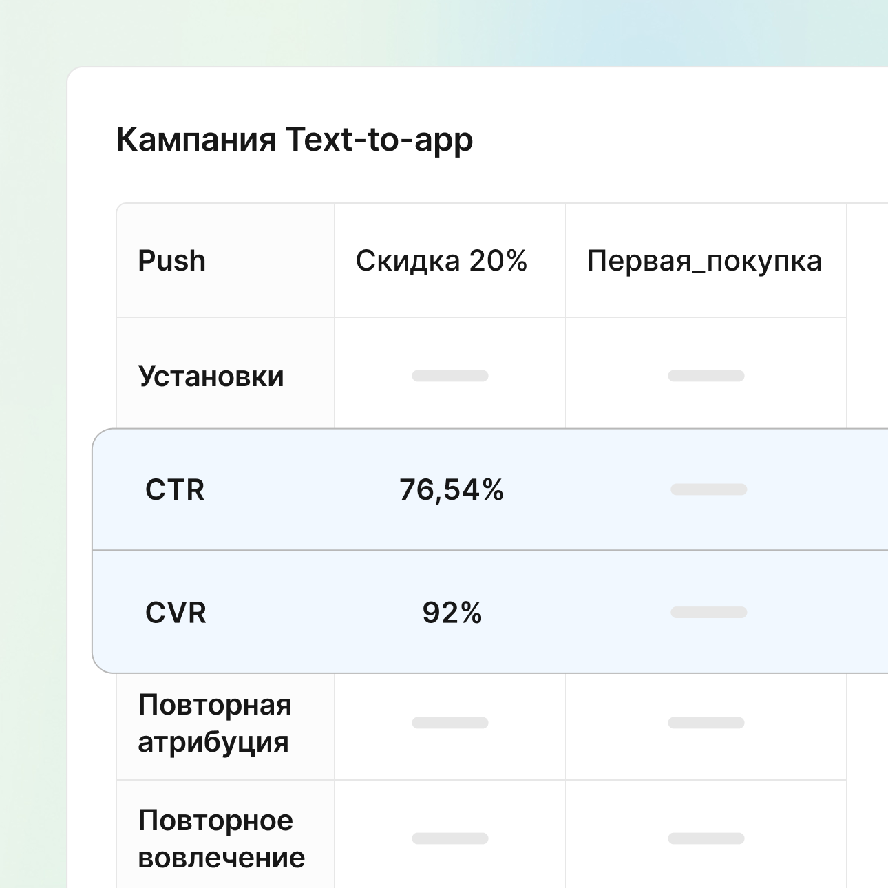 Отслеживайте эффективность кампании уже в процессе её проведения. Просматривайте коэффициенты кликабельности, метрики запуска приложений и конверсии на дэшбордах, чтобы с их помощью оптимизировать стратегии рассылки в процессе проведения кампаний.