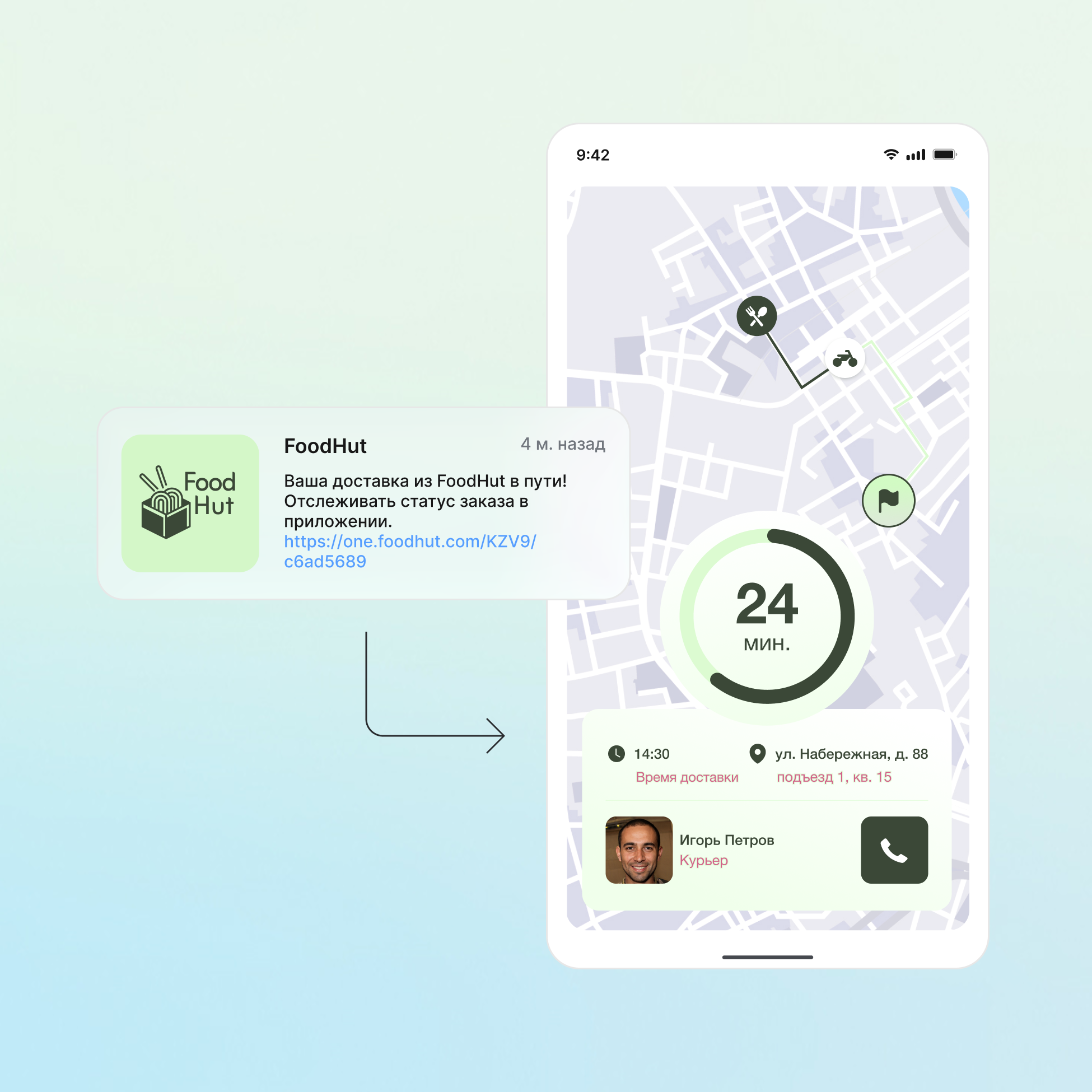Создавайте СМС-пути, которые приводят к конверсиям. Отправляйте безопасные, брендированные ссылки, которые бесшовно направляют клиентов от сообщения к оформлению заказа одним кликом.