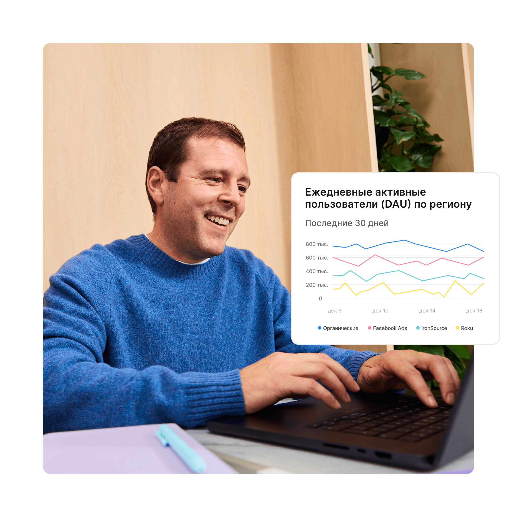 Соедините пути пользователей на мобильных устройствах, в вебе, ПК, консолях и CTV, чтобы выявить истинный LTV.