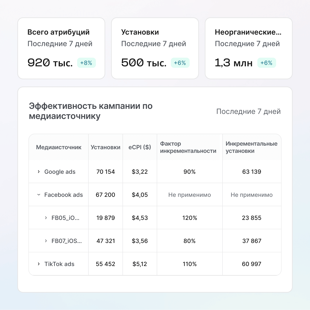 Определите, какие кампании действительно стимулируют рост. Запускайте эксперименты по инкрементальности во всех основных рекламных сетях с одного дэшборда.