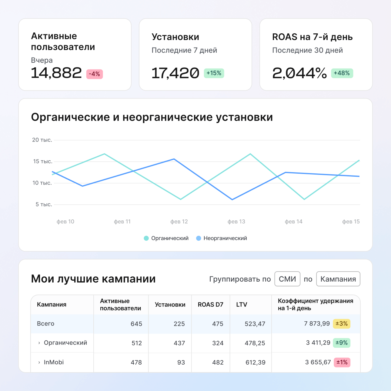 Измеряйте каждое взаимодействие приложения с безопасной для конфиденциальности точностью. Получите полезные инсайты, чтобы принимать более взвешенные решения по кампаниям.