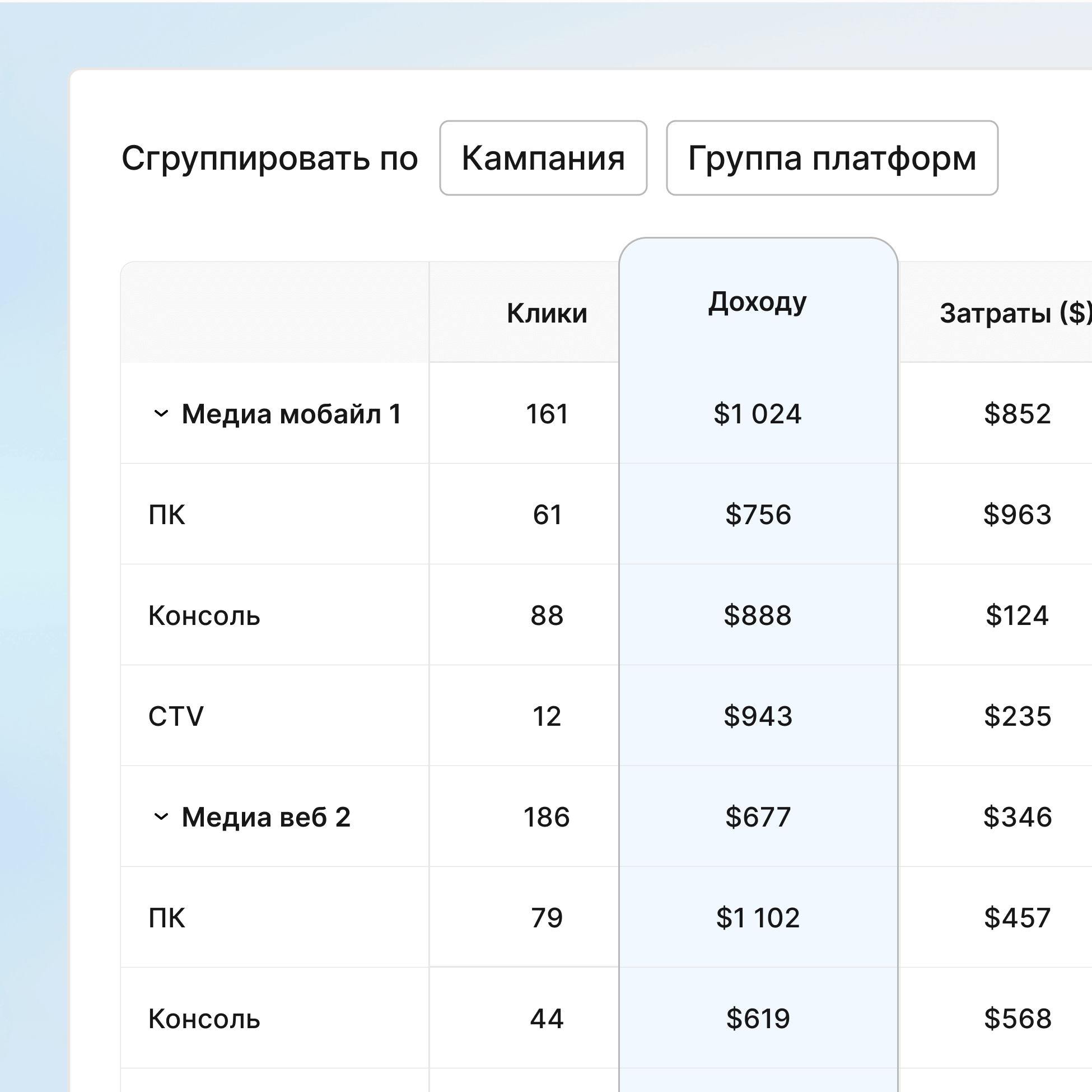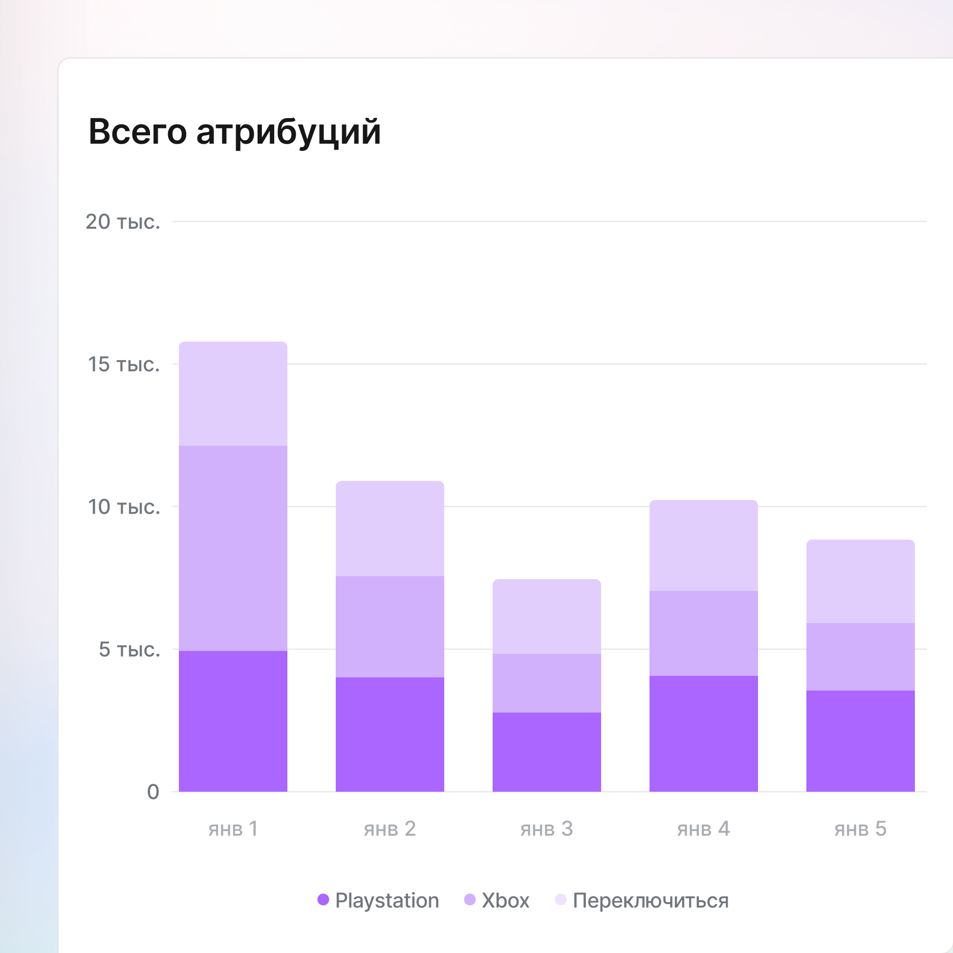 Измеряйте эффективность игр на ПК и консолях, где игроки тратят в 3 раза больше, чем на мобильных устройствах. Свяжите каждую конверсию из Steam, Epic, PlayStation, Xbox и Nintendo с её исходной кампанией, добавив данные о доходе от IAP и метрики LTV, которые доказывают, что эти премиум-платформы приносят реальную прибыль.
