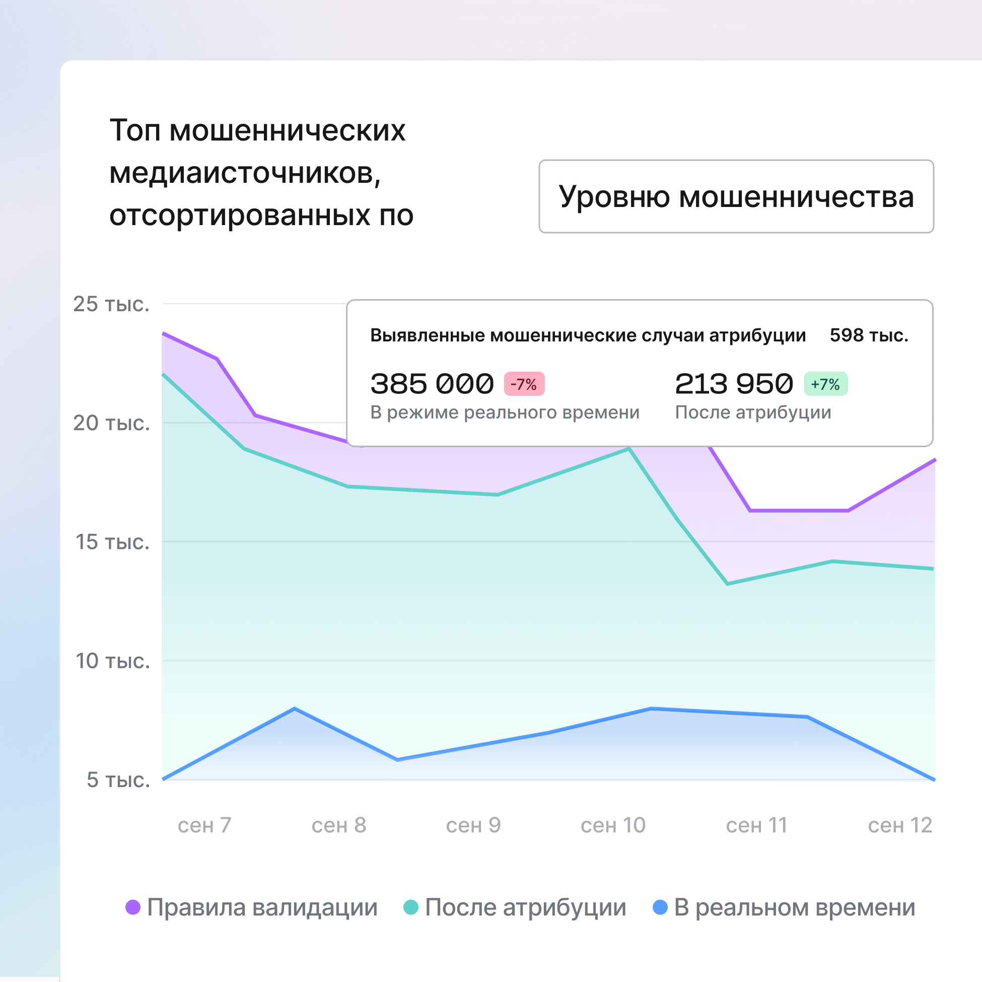 Получайте достоверные данные о результативности креативов, устраняя фиктивное вовлечение и бот-трафик. Решение AppsFlyer на базе ИИ гарантирует, что анализ креативов опирается на подлинные взаимодействия пользователей, а не на мошенническую активность, искажающую отчетность.